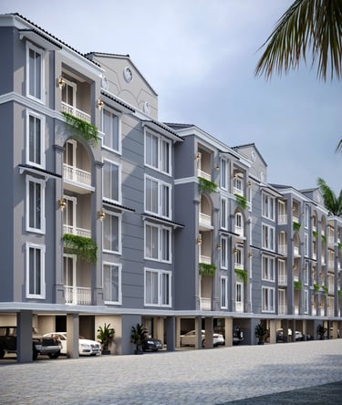 Introduces the unique value proposition: 1,140-1,450 sq ft 2BHK apartments in Calangute with private plunge pools, penthouse terrace gardens, and enormous community pool.
