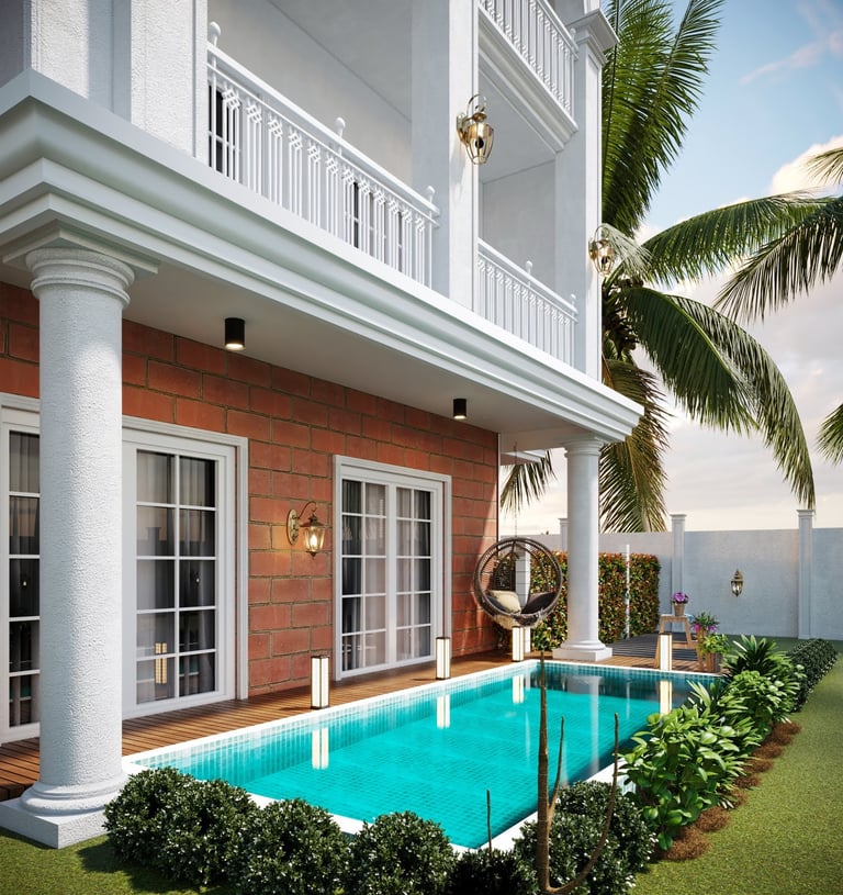 Introduces the revolutionary dual-pool concept: terrace swimming pool + private pools with ground floor units in historic Reis Magos.