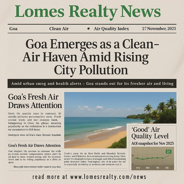 Discover how Goa’s healthier AQI and cleaner air outperform major cities like Delhi, Mumbai, Pune, and Bangalore, shaping smarter lifestyle decisions. - Goa air quality advantages
