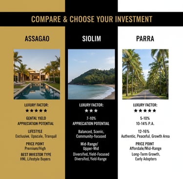Best Areas to Invest in North Goa for 2025! Compare Assagao, Siolim & Parra for property appreciation, rental yields, lifestyle and investment ROI. Expert guide.