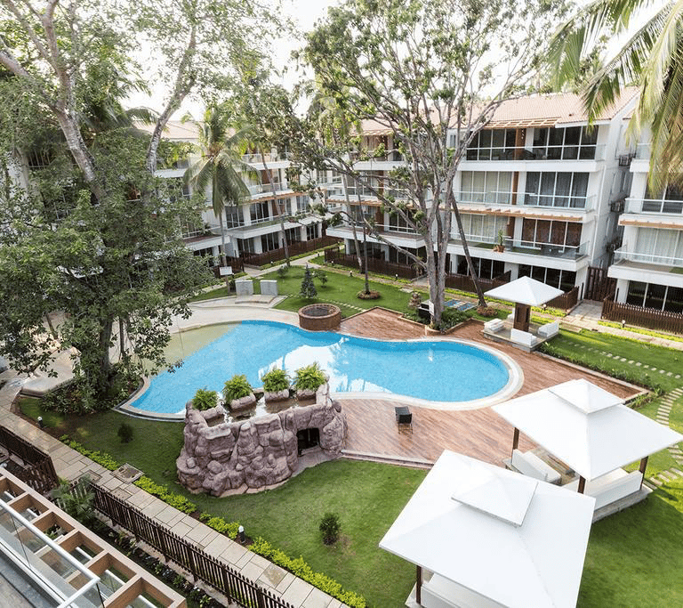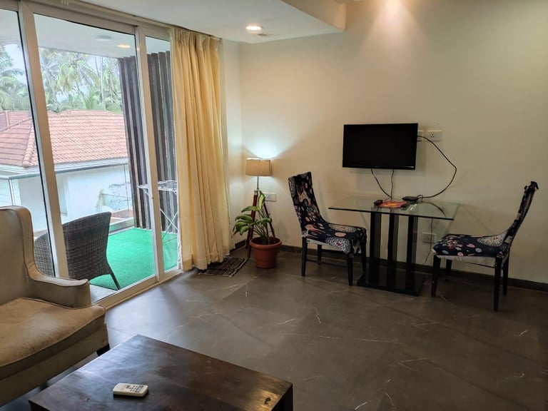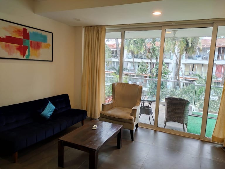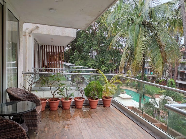 Fully Furnished Pool-Facing Apartment Near Calangute & Baga Beach, offering stunning views and luxurious amenities, perfect for a relaxing getaway in one of the most vibrant locations of Goa.