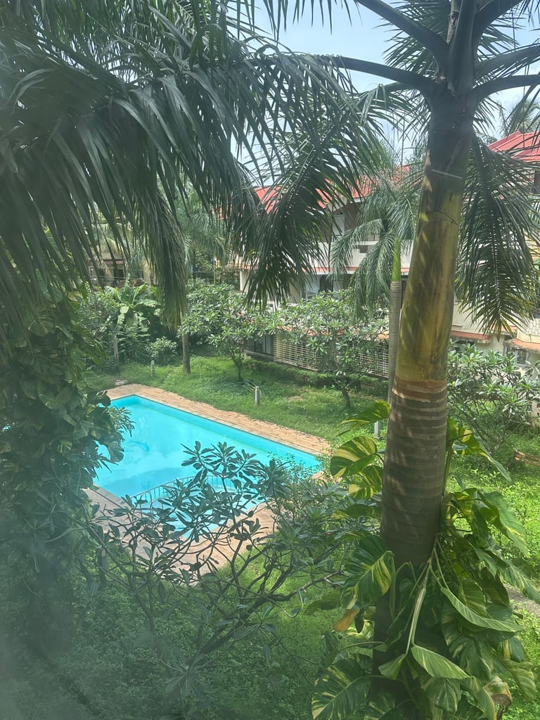 Fully Furnished 2BHK with Pool & Garden View in Prime Porvorim, offering a serene and luxurious living experience that combines comfort with modern amenities to create the perfect home for families and individuals alike.