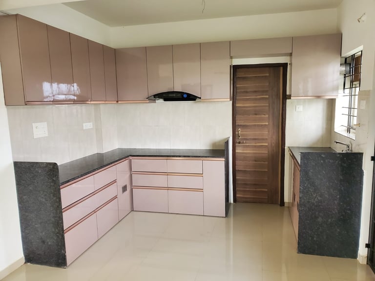 Modular kitchen with cabinets & extractor hood